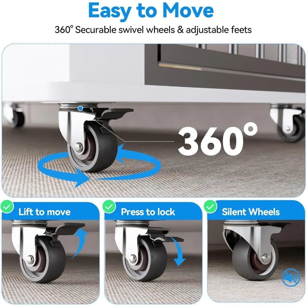 63 Dog Crate Furniture for 2 Dogs, XL Large Indoor Wooden Dog Kennel with Divider, 6 Lockable Wheels & Storage, Heavy Duty