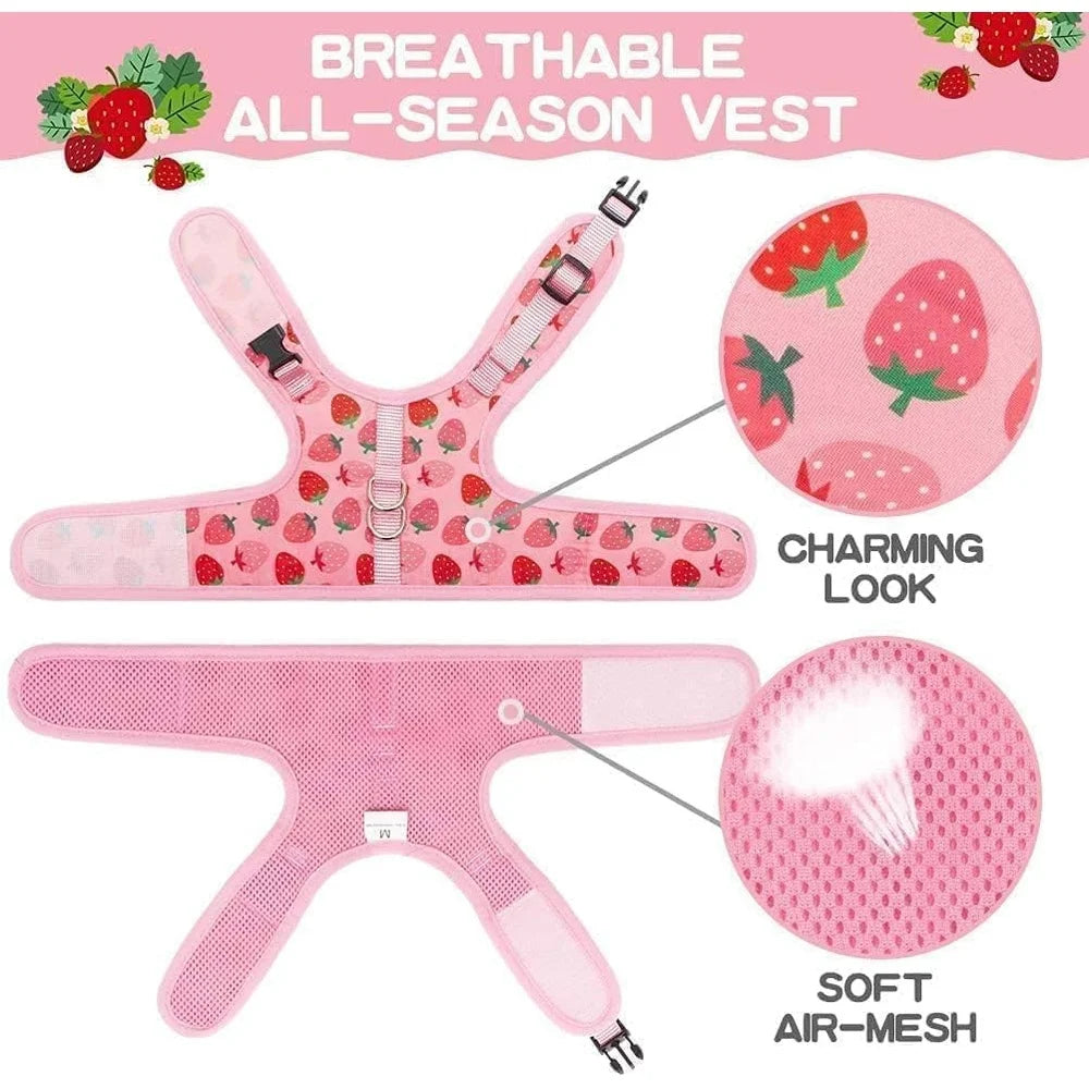 [CUTE PATTERN]: The lovely strawberry pattern on the kitten/puppy harness will make your girl more charming and delightful. She will be a pretty princess. You and your sweet kitten/puppy will definitely love this amazing harness