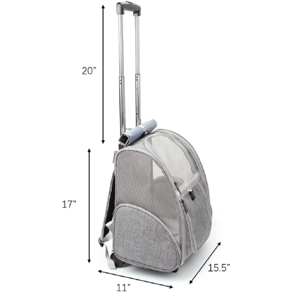 Pet Rolling Carrier, Dog Backpack with Wheels, Cats, Puppies Travel Bag with Wheels, Dog Trolley (Grey)