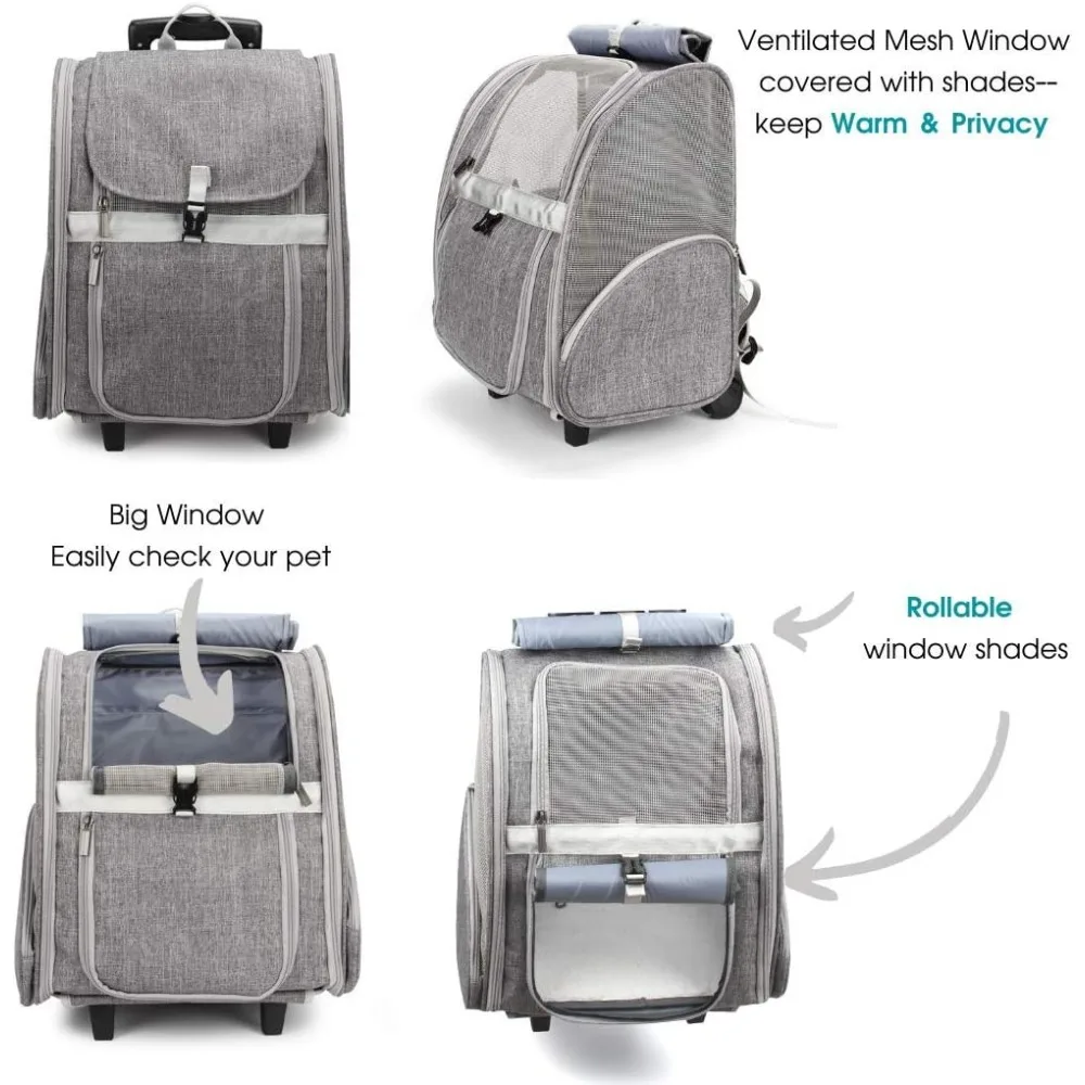 - Convenient Features: Rollable window shades provide warmth and privacy, while the strap storage layer ensures that the backpack straps won't interfere with the rolling carrier function