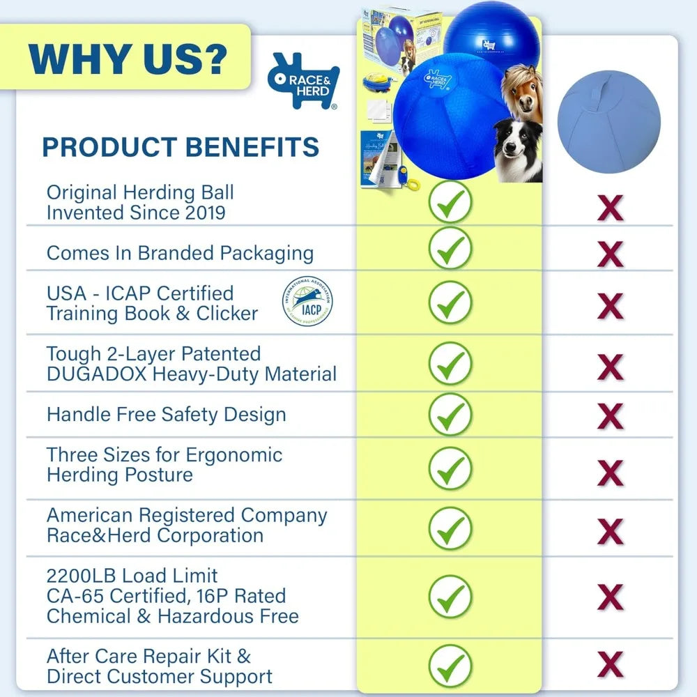 - SAFE WITH ANTI-BURST DESIGN: Crafted for intense play, our herding balls for German Shepherds feature a tear-proof cover and explosion-proof PVC bladder. This herding dog toys ensures safety during vigorous chasing, making it the perfect outdoor companion for daily exercise and obedience training. Herding balls are CA 65 certified, anti-burst technology safe for herding dog ball play.