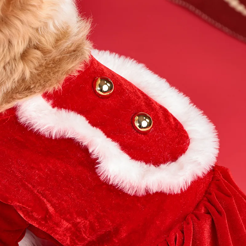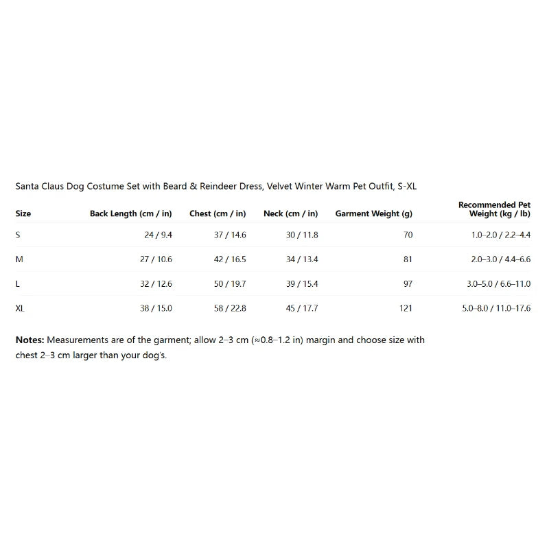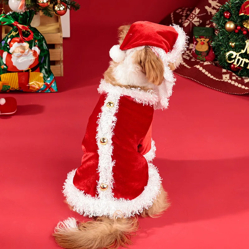 Santa Claus Dog Costume Set with Beard & Reindeer Dress, Velvet Winter Warm Pet Outfit, S-XL