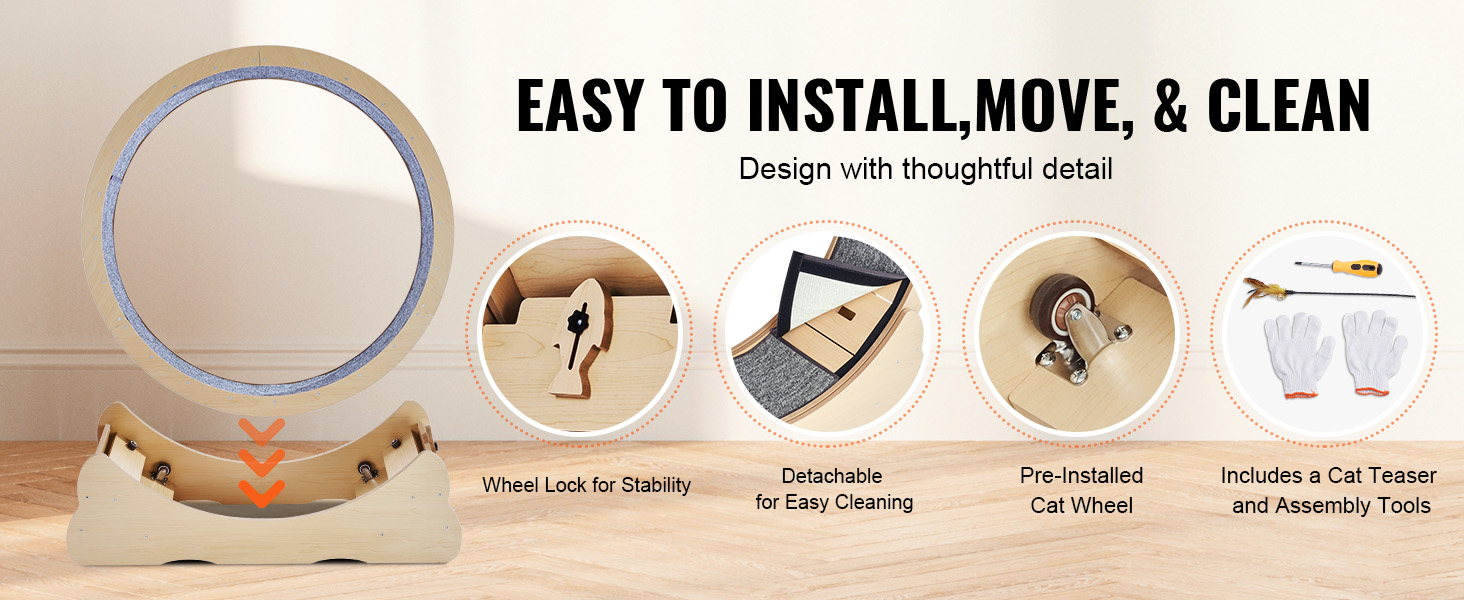 Durable and Safe Design: Crafted from sturdy wooden panels with a thickness of 0.5"/12 mm, this cat exercise wheel features a narrow 0.2" gap to protect your pet's paws. The widened base and running surface provide enhanced stability. It promotes feline health by reducing obesity risks and improving joint mobility, keeping your cat active and happy