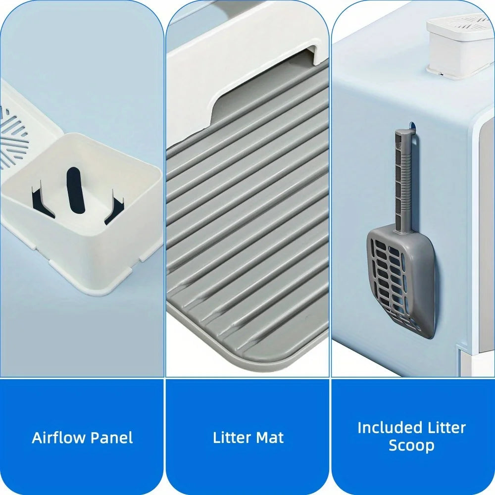 Uforic Enclosed Cat Litter Box - Odor-Free Hooded Design, Easy to Clean, with Mat, Scoop, and Durable Plastic Material - Blue