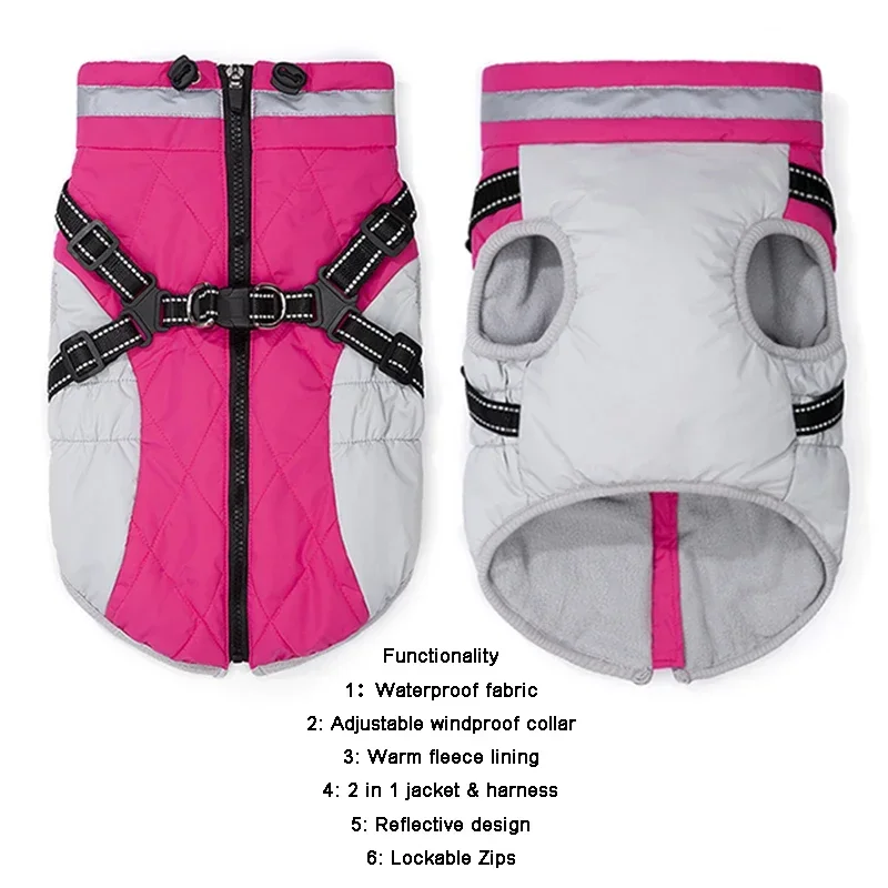 Waterproof-The dog coat is made of waterproof fabric, good wear resistance, more fashionable.The inner side is made of composite fleece fabric, warm and comfortable. wear it, and you can save much time.